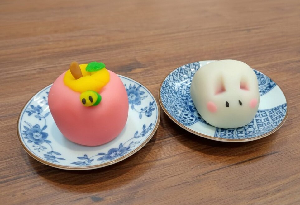 完成した“りんご”と“うさぎ”のねりきりがこちら。