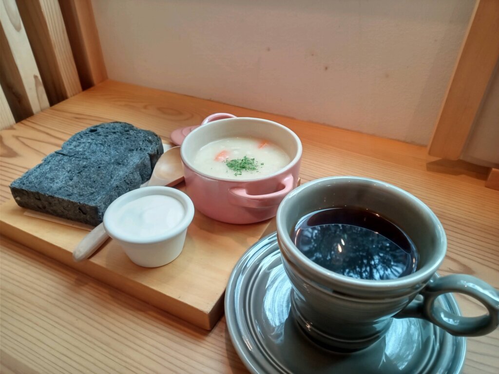 - 竹炭のパン: 外はサクッと、中はモチッと。黒い色が冬の土のようでありながら、味わいは温か。